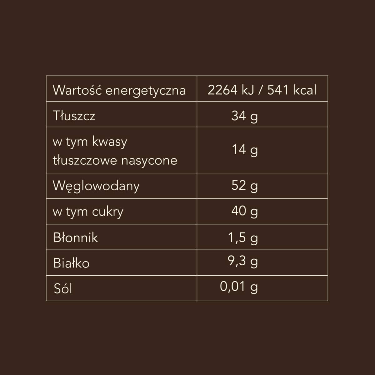 Informacja o alergenach / Produkt zawiera orzechy nerkowca i mleko oraz może zawierać śladowe ilości orzechów ziemnych, innych orzechów oraz glutenu.